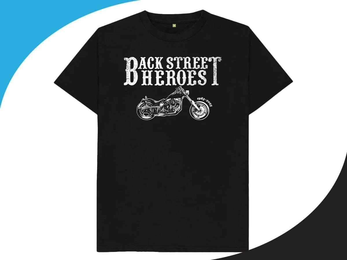 Throw it back 40 years with this Back Street Heroes t-shirt, based on the design of a shirt that appeared in the first issue, back in 1983.
