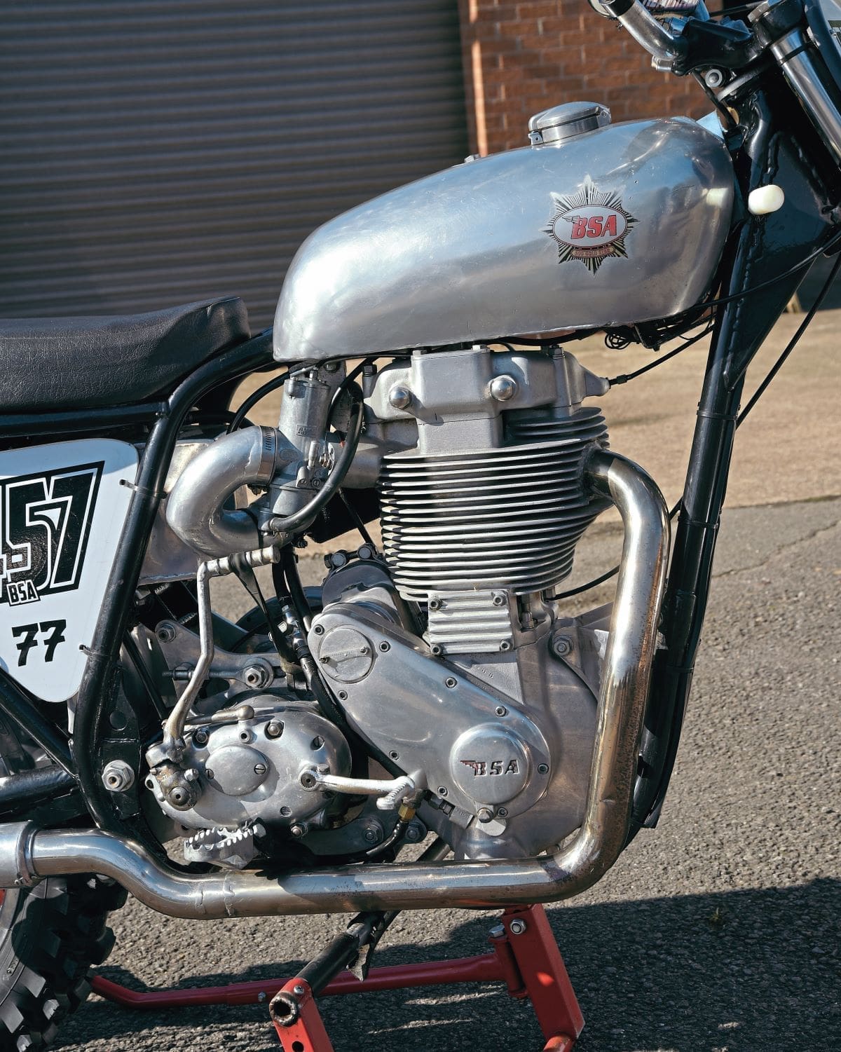 When the idea of classic racing emerged, it was so owners of bikes like the Gold Star and Matchless G80s could get them out and use them as they should. But one of the problems was getting hold of a scrambler. As far as BSA’s sporting single was concerned its multi-use role and ease of conversion between specifications possibly worked against it. With enthusiasts wanting to experience the Clubman Gold Star a lot of scramblers had their proper tyres and handlebars replaced by road rubber and clip-on handlebars. Still, this isn’t too great a problem as the B31/B33 single frame is an all-welded one and differs from the Goldie version by having a few more lugs welded to it. These are easily removed and the path to a Goldie scrambler is set.